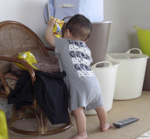 8ヵ月直前の5/21には、つかまり立ちを始めました。
